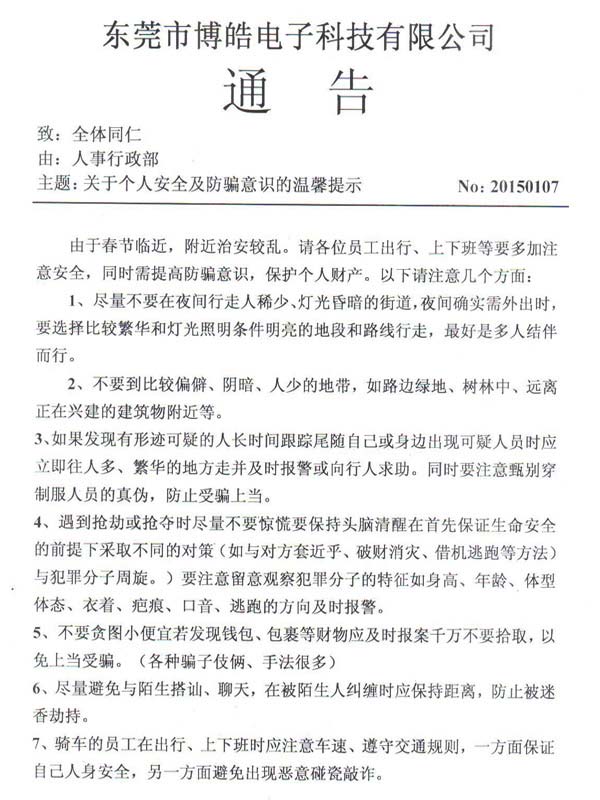 事情就說到這里,博皓電子硅膠制品廠希望通過這件事情提醒大家,防人之心不可無,越是年底,小偷騙子越是猖獗,越是要提高警惕,切不可受眼前利益的蒙蔽而承受更大的損失。